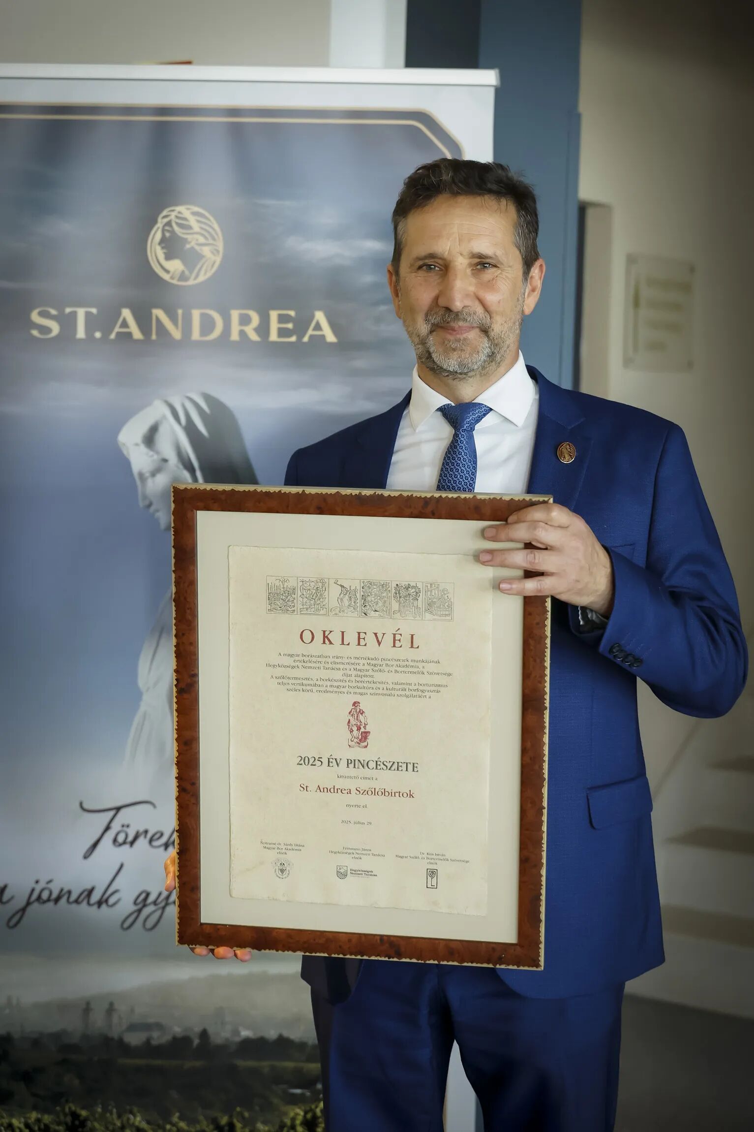 Örömmel osztjuk meg a hírt, hogy a St. Andrea Szőlőbirtok kapta az Év Pincészete Magyarországon 2025 díjat, amelyet 2025. július 29-én Dr. Lőrincz György vehetett át.
